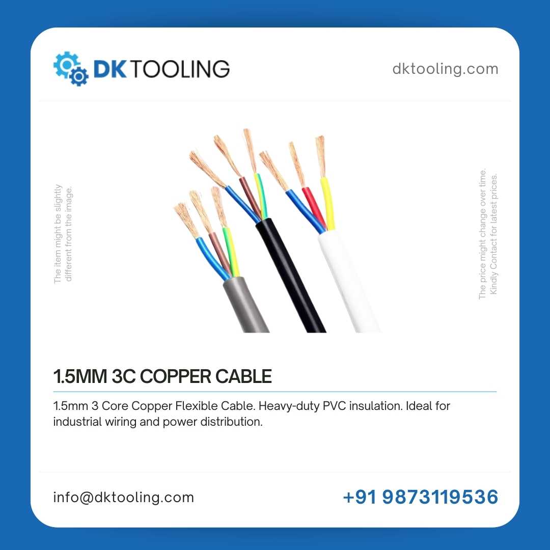 1.5mm 3 Core Copper Flexible Cable. Heavy-duty PVC insulation. Ideal for industrial wiring and power distribution.