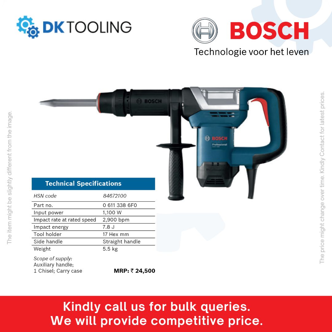 Answer: The Bosch DEMOLITION HAMMER GSH 500 typically comes with a 1-year manufacturer’s warranty against defects in materials and workmanship. It’s always best to confirm the specific warranty terms with your authorized Bosch dealer at the time of purchase.